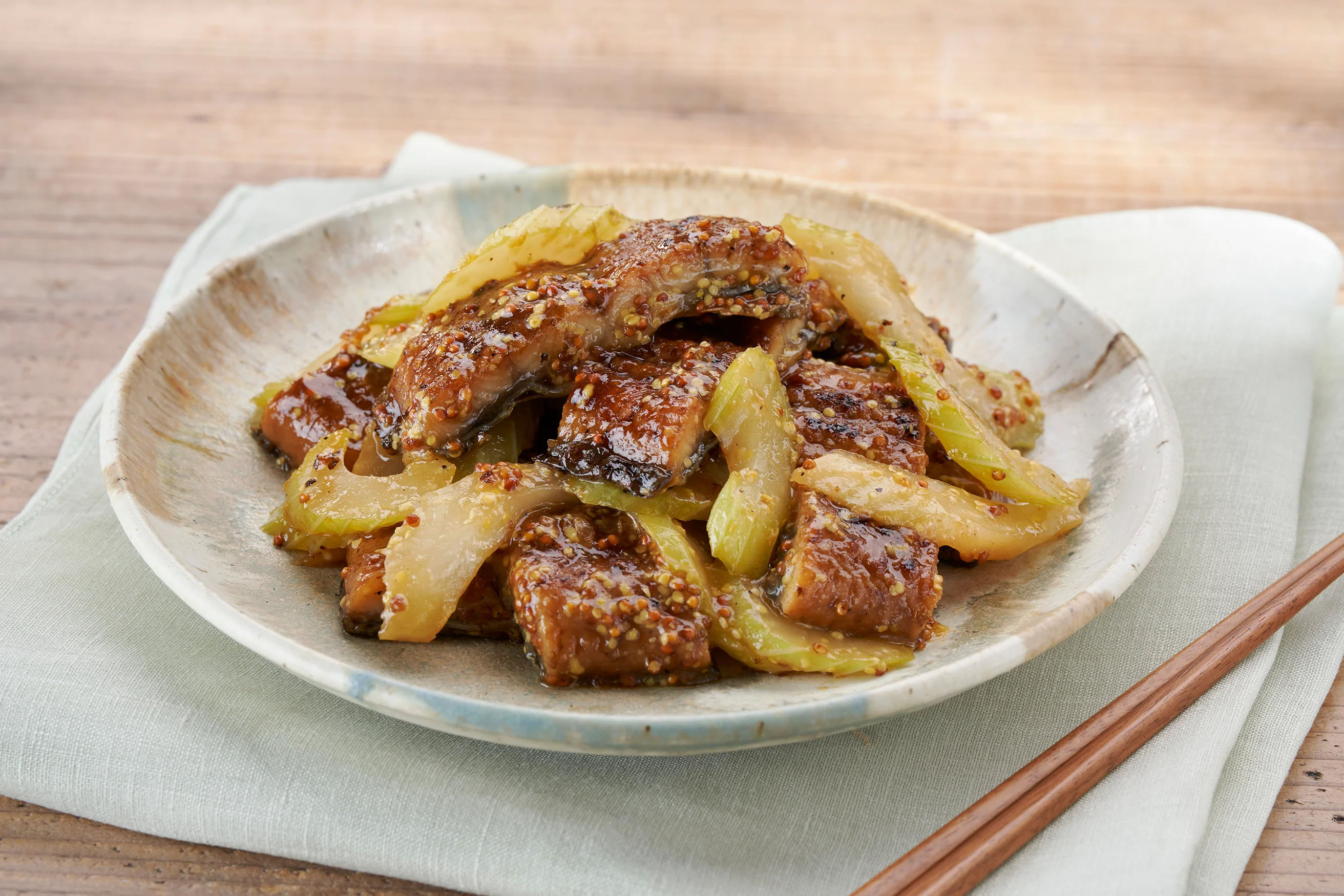 肉の代わりにうなぎを用いることでうなぎのコクを味わいながら楽しめる中華風の1品。