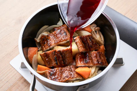 うなデミシチュー 調理時間 25 分 玉ねぎ、にんじん、じゃがいも、しめじを煮込んでデミグラスソースときざみうなぎで煮込みます。ビーフシチューに負けない重厚な味わいのシチューに。ブロッコリーであざやかに。 レシピに使用している商品 鹿児島県産 うなぎ長蒲焼【大】 2尾セット【0001ST】 商品ページへ → 材料(2人分) うなぎの蒲焼1枚 にんじん1/2本 玉ねぎ1/2個 じゃがいも1個 しめじ1/4袋 ブロッコリー1/4房 しょうが1/2片 オリーブオイル大さじ1 赤ワイン1/2カップ A 水1/2カップ コンソメ顆粒小さじ1/2 味噌大さじ1/2 デミグラスソース150g 作り方 にんじんは乱切り、玉ねぎはくし切り、じゃがいもは皮をむいて一口大に切る。 しめじは軸を切り落としてほぐす。 ブロッコリーは小房に分けて塩(分量外)の入った熱湯で2分程ゆでる。 しょうがはせん切りにする。 うなぎは3㎝幅に切る。 鍋にオリーブオイルを熱し、しょうが、にんじん、玉ねぎ、じゃがいも、しめじを炒める。 玉ねぎがしんなりしたらうなぎ、赤ワインを加えて蓋をし、1分程蒸し焼きにする。 2に水とコンソメ顆粒を加え、野菜がやわらかくなるまで煮る。 野菜に火が通ったらデミグラスソースと味噌を溶き入れ、10分程中火~弱火で煮込む。 3を器に盛り付け、ブロッコリーを添える。 レシピ考案者 渥美 まゆ美 様 株式会社Smile meal代表取締役 管理栄養士、フードコーディネーター、料理家、フードプロデューサー 商品開発や出版、レシピ開発、メディア出演など多岐に渡り活動。2016年 株式会社Smile meal設立。 食を通して人々の健康につながる料理の提案や売れる商品作りのお手伝い、健 康セミナー講師や料理教室で企業の健康経営サポートも手掛ける。 テレビ出演多数。出版「朝つめるだけ弁当188」「世界一ラクチンな栄養ごはん 」(西東社)他多数。 一覧へ戻る