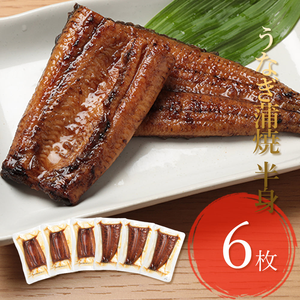 食べやすくカットされた半身蒲焼6枚セット。食べごたえ抜群の美味しさです。濃厚で香ばしいタレは、「しょうゆ・みりん・砂糖・でん粉」のみで作っています。外はカリッと!噛めば噛むほど柔らかな身がほぐれ、お口いっぱいに広がる美味しさをお楽しみください。九州産の最高品質のさとうのうなぎ、品質・味ともにご家庭に幸せと感動をお届けします。